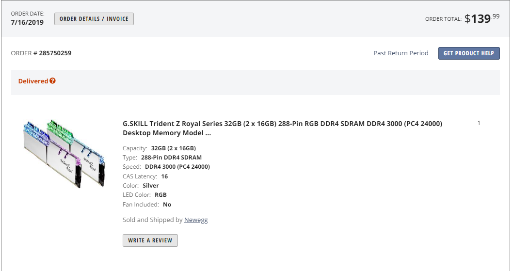 - G.Skill Silver Royal 3000Mhz C16 DDR4 16GB * 2