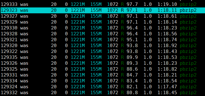 이 글을 작성하는 이유는 평소와 같이 tar -cvf 압축파일.tar 압축대상 으로 압축을 하는데 용량이 크게되니 자연스럽게 오래걸린다라고 생각만 했었고, htop 을 통해 모니터링을 해보니 단일 코어로 압축을 하고 있는 사실을 확인하고,
