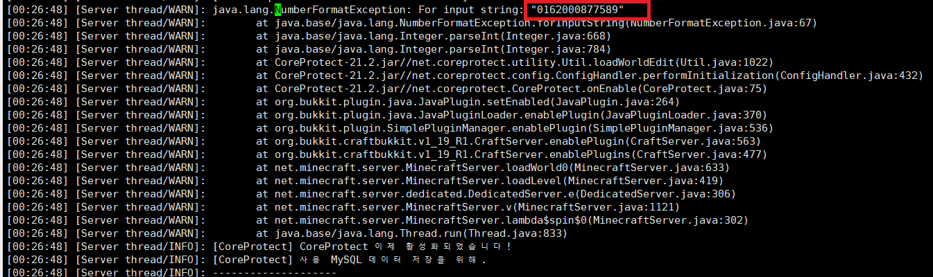 서버 구동시 Java에서 기본 Exception 중 NumberFormatException이 발생한다.