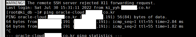 3) MariaDB 에서 ping 또는 nslookup 실행시 접근 서버 IP 144가 나오지 않으면 불가능함.