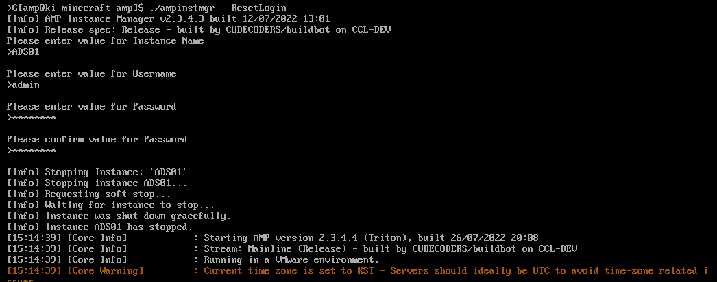 ./ampinstmgr --ResetLogin.