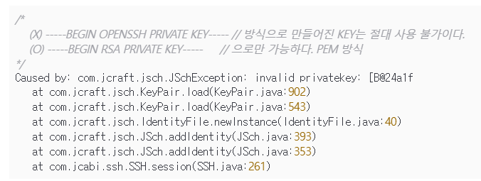 Caused by: com.jcraft.jsch.JSchException: invalid privatekey: [B@24a1f