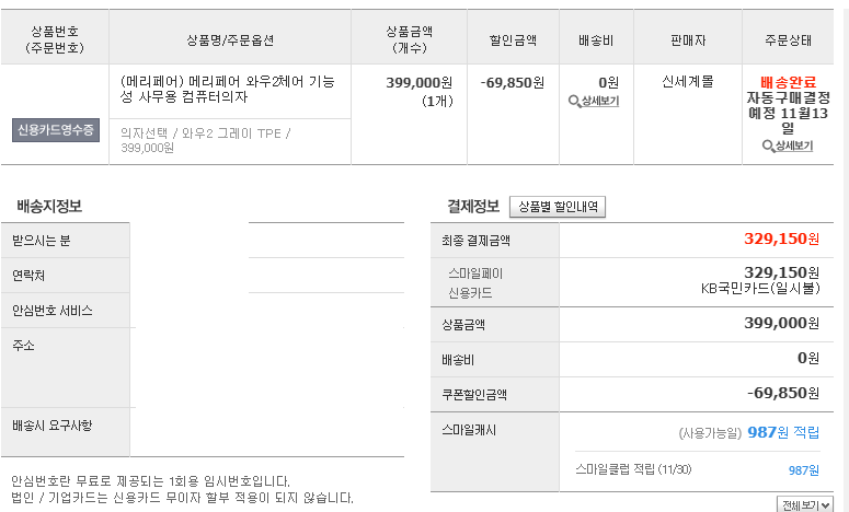 프리랜서 근무 중에 의자로 인해 목과 허리가 너무 힘든 상황이 발생되어, 집에서 사용중인 메리페어 와우2 망고 TPE가 생각나 구매를 결심하게 되었습니다.